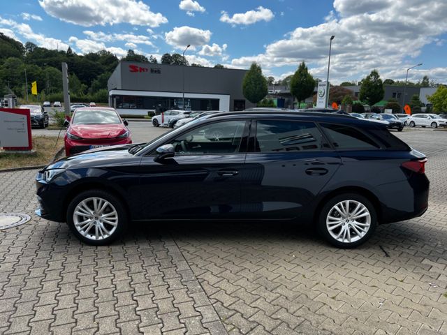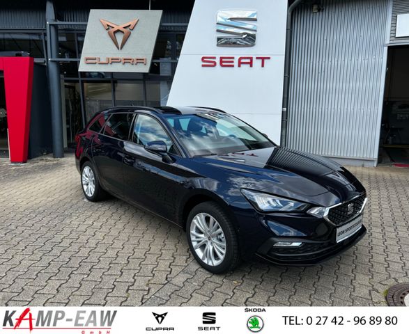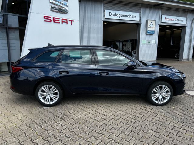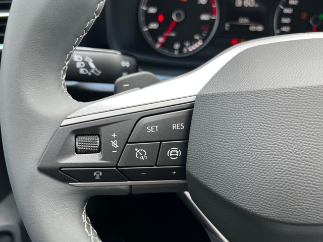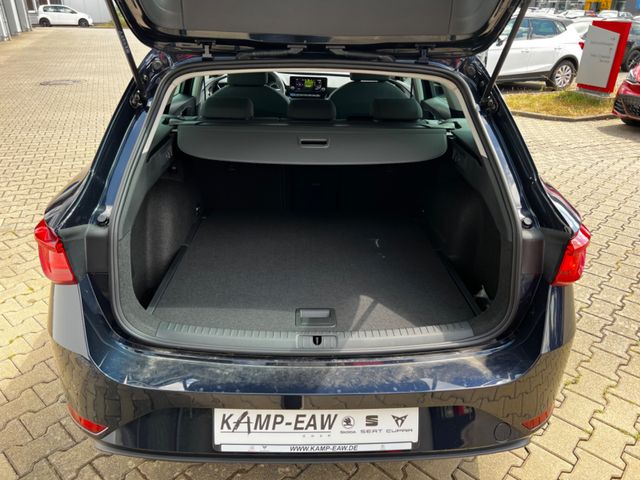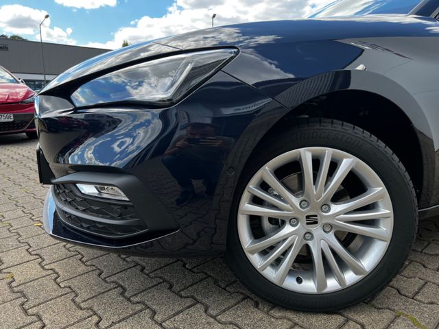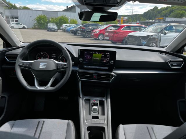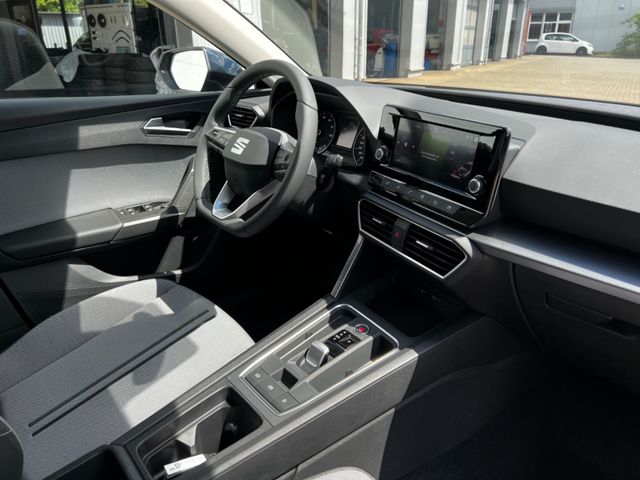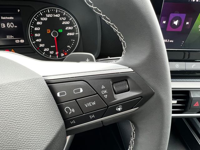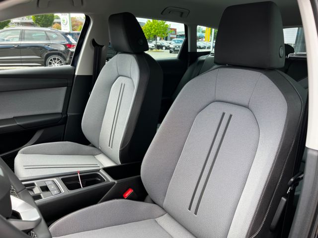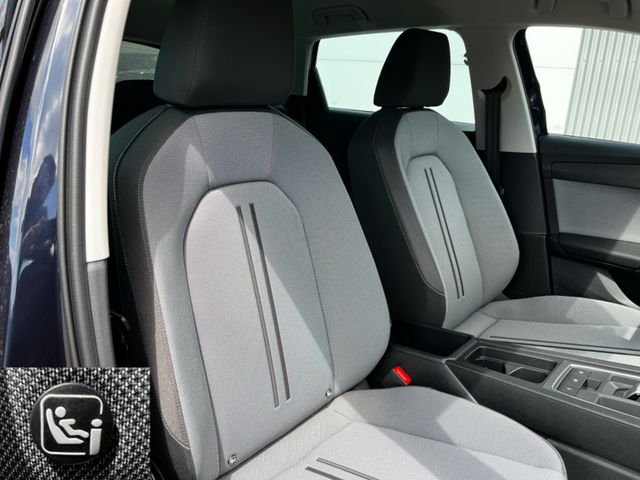 6 Lautsprecher, Ablagetasche an Vordersitzlehnen, Airbag Beifahrerseite abschaltbar, Airbag Fahrer-/Beifahrerseite, Antriebs-Schlupfregelung (ASR), Außenspiegel Wagenfarbe, Blinkleuchten LED in Außenspiegel integriert, Bluetooth-Schnittstelle mit Freisprecheinrichtung integriert, Bordcomputer, Dachreling, Durchladeeinrichtung (Mittelarmlehne hinten), Elektron. Querdifferentialsperre (XDS), Fahrassistenz-System: Müdigkeitserkennung, Fahrassistenz-System: Spurhalteassistent, Fahrassistenz-System: Umfeldbeobachtungssystem (Front assist) mit City-Notbremsfunktion, Fensterheber elektrisch vorn + hinten mit Komfortschaltung, Gepäckraumabdeckung / Rollo, Handschuhfach beleuchtet, Heckleuchten Voll-LED mit dynamischem Lichtband (Infinite Light), Isofix-Aufnahmen für Kindersitz, Karosserie: 5-türig, Klimaautomatik, Kofferraumbeleuchtung, Kopf-Airbag-System, Laderaumboden variabel und herausnehmbar, Lendenwirbelstütze Sitz vorn links, verstellbar, Lenkrad (Sport/Leder) mit Multifunktion, Mild-Hybrid 110 kW (Motor 1,5 Ltr. - 110 kW eTSI ACT), Mobile Online Dienste Seat Connect, Nebelscheinwerfer LED mit Abbiegelicht, Notrufsystem, Otto-Partikelfilter (OPF), Parkbremse elektrisch mit Auto-Hold-Funktion, Radioempfang digital (DAB+), Reifen-Reparaturset, Reifenkontroll-Anzeige, Rücksitzlehne geteilt/klappbar (1/3-2/3), Rücksitzlehnen umklappbar mit Fernentriegelung im Kofferraum, Schadstoffarm nach Abgasnorm Euro 6d, Schalt-/Wählhebelgriff Leder, Scheinwerfer LED, SEAT Media-System Plus, Seitenairbag, Seitenairbag vorn mitte (Central Airbag), Sitz vorn links höhenverstellbar, Sitz vorn rechts höhenverstellbar, Sitzbezug / Polsterung: Stoff, Sonnenblende links mit Spiegel (beleuchtet), Sonnenblende rechts mit Spiegel (beleuchtet), Start/Stop-Anlage, Steckdose (12V-Anschluß) im Koffer-/Laderaum, Steckdose (12V-Anschluß) vorn, USB-Schnittstelle vorn (2-fach, Typ C), Verzurrösen Koffer-/Laderaum, Warnanlage für Sicherheitsgurt-System, Wärmeschutzverglasung- Metallic