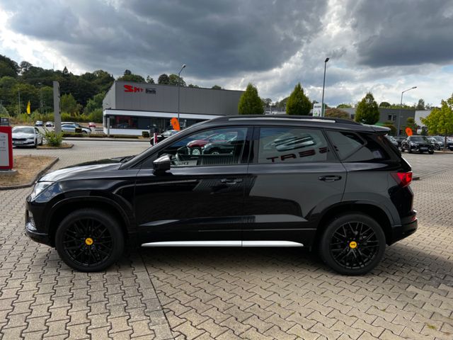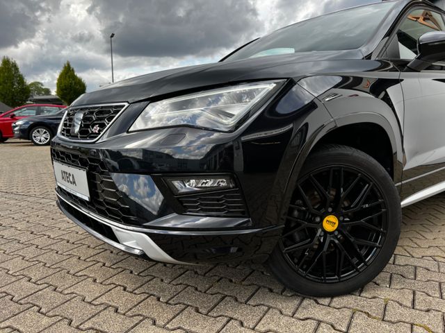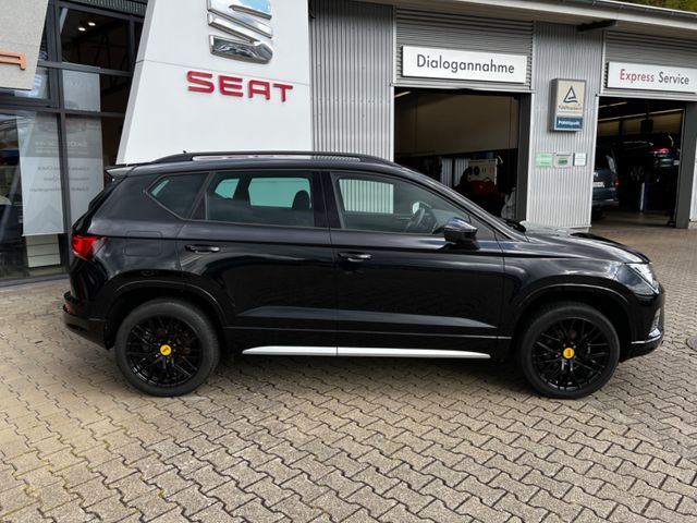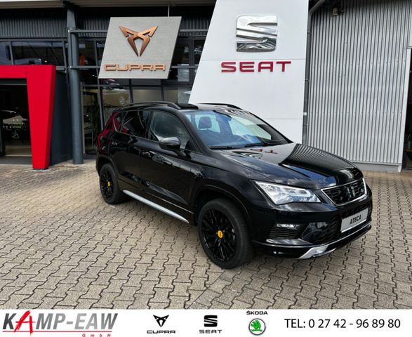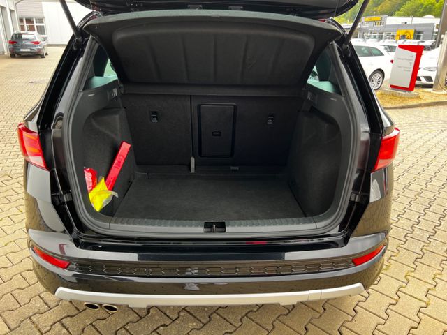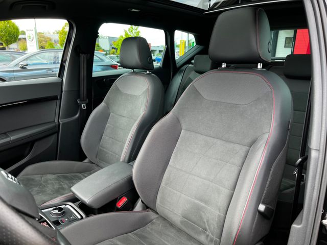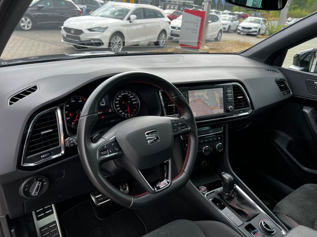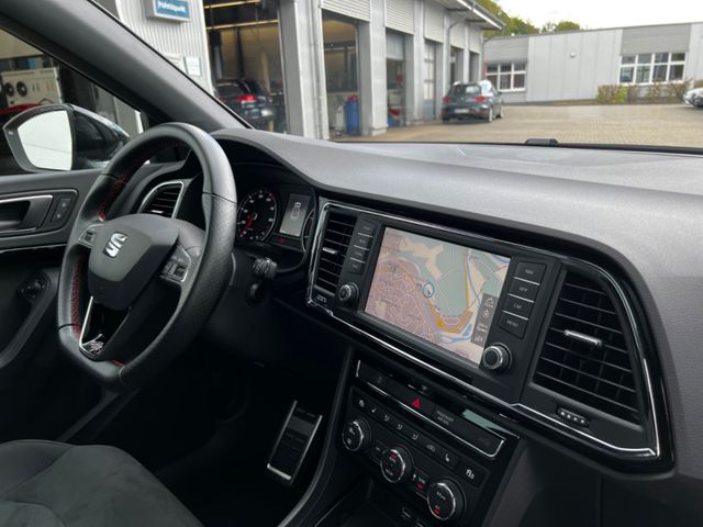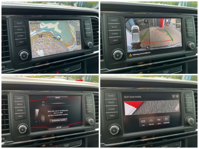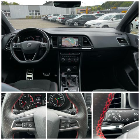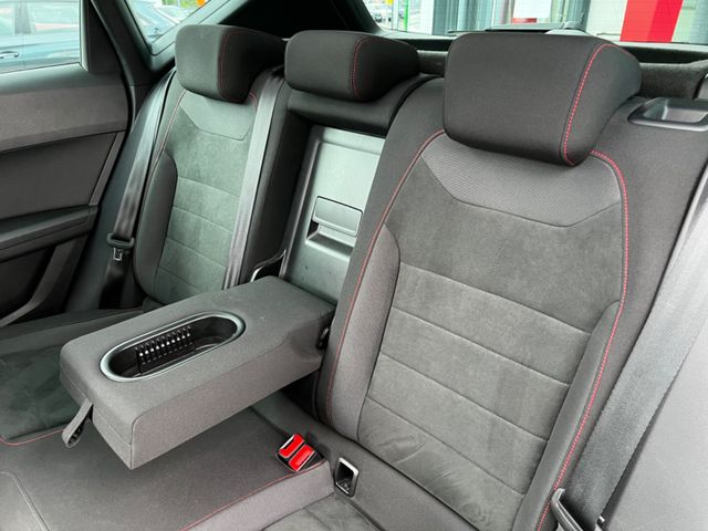 3. Bremsleuchte, Airbag Beifahrerseite abschaltbar, Airbag Fahrer-/Beifahrerseite, Alcantara-Paket, Antriebs-Schlupfregelung (ASR), AUX-IN-Anschluss und 2 x USB-Anschluss, Außenspiegel elektr. verstell-, heiz- und anklappbar mit Spiegelabsenkung und Welcome Light, Außenspiegel lackiert, Außenspiegel und Türgriffe außen in Wagenfarbe, Blinkleuchten in Außenspiegel integriert, Bordcomputer, Bremsassistent, Chromleisten an Seitenfenstern, Dachhimmel schwarz, Dachreling, Doppeltonhorn, Einparkhilfe hinten, Einstiegsleisten beleuchtet, Fahrassistenz-System: Berganfahr-Assistent (Hill-Holder), Fahrassistenz-System: Fahrprofilauswahl (SEAT Drive Profile), Fahrassistenz-System: Müdigkeitserkennung, Fahrassistenz-System: Umfeldbeobachtungssystem (Front assist) mit City-Notbremsfunktion, Fensterheber elektrisch vorn + hinten, Fußraumbeleuchtung vorn, Gepäckraumabdeckung / Rollo, Handschuhfach beleuchtet, Heckleuchten LED, Innenausstattung: Chrom-Applikationen, Innenraumlicht-Paket LED, Isofix-Aufnahmen für Kindersitz, Karosserie: 5-türig, Klimaanlage Climatronic 2-Zonen, Knieairbag Fahrerseite, Komfortsitze, Kopf-Airbag-System, Kopfstützen hinten (3-fach), Kopfstützen vorn, Lendenwirbelstütze Sitz vorn links, verstellbar, Lendenwirbelstütze Sitz vorn rechts, verstellbar, Lendenwirbelstütze verstellbar, Lenkrad (Sport/Leder) mit Multifunktion, LM-Felgen, Mittelarmlehne hinten, Mittelkonsole vorn mit Mittelarmlehne, Becherhalter, Ablagebox und Luftausströmer hinten, Motor 1,5 Ltr. - 110 kW 16V TSI ACT, Otto-Partikelfilter (OPF), Parkbremse elektrisch, Radstand 2638 mm, Reifenkontroll-Anzeige, Rückfahrkamera, Rücksitzlehne klappbar, Rücksitzlehnen umklappbar mit Fernentriegelung im Kofferraum, Schadstoffarm nach Abgasnorm Euro 6d-TEMP, Schalt-/Wählhebelgriff Leder, Scheinwerfer LED, Seitenairbag, Seitenscheiben hinten und Heckscheibe abgedunkelt, Sitz vorn links höhenverstellbar, Sitz vorn rechts höhenverstellbar, Sitz-Paket Dinamica, Start/Stop-Anlage, Stau-/Ablagefach unter Sitz vorn links, Steckdose (12V-Anschluß) vorn, Stoßfänger FR-Design, Verglasung getönt, Verzurrösen Koffer-/Laderaum, Wärmeschutzverglasung- Metallic