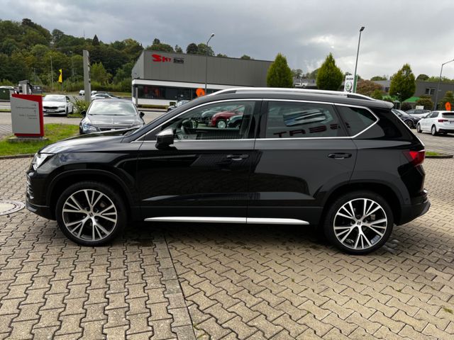 3. Bremsleuchte, Ablagetasche an Vordersitzlehnen, Airbag Beifahrerseite abschaltbar, Airbag Fahrer-/Beifahrerseite, Antriebs-Schlupfregelung (ASR), Antriebsart: Allradantrieb, Außenspiegel elektr. verstell-, heiz- und anklappbar mit Spiegelabsenkung, Außenspiegel Wagenfarbe, Blinkleuchten LED in Außenspiegel integriert, Bluetooth-Schnittstelle mit Freisprecheinrichtung integriert, Bordcomputer, Brillenfach, Design-Paket Exterieur, silber, Doppeltonhorn, Einstiegsleisten beleuchtet, Elektron. Querdifferentialsperre (XDS), Fahrassistenz-System: Berganfahr-Assistent (Hill-Holder), Fahrassistenz-System: Fahrprofilauswahl (SEAT Drive Profile), Fahrassistenz-System: Müdigkeitserkennung, Fahrassistenz-System: Umfeldbeobachtungssystem (Front assist) mit City-Notbremsfunktion, Fensterheber elektrisch vorn + hinten mit Komfortschaltung, Gepäckraumabdeckung / Rollo, Handschuhfach beleuchtet, Heckleuchten LED mit dynamischem Blinklicht, Innenraumlicht-Paket LED, Isofix-Aufnahmen für Kindersitz, Karosserie: 5-türig, Klimaanlage Climatronic 2-Zonen, Knieairbag Fahrerseite, Kofferraumbeleuchtung, Kopf-Airbag-System, Lendenwirbelstütze Sitz vorn links, verstellbar, Lendenwirbelstütze Sitz vorn rechts, verstellbar, Licht- und Sicht-Paket, Mittelarmlehne hinten, Mittelkonsole vorn mit Mittelarmlehne, Becherhalter, Ablagebox und Luftausströmer hinten, Modellpflege, Motor 2,0 Ltr. - 110 kW TDI, Nebelscheinwerfer LED mit Abbiegelicht, Notrufsystem, Parkbremse elektrisch mit Auto-Hold-Funktion, Radstand 2630 mm, Reifen-Reparaturset, Reifenkontroll-Anzeige, Rückfahrkamera, Rücksitzlehne geteilt/klappbar (1/3-2/3), Schadstoffarm nach Abgasnorm Euro 6d, Schalt-/Wählhebelgriff Leder, Scheinwerfer Voll-LED, Schließ-/Startsystem Kessy, SEAT Media-System Plus, Seitenairbag, Seitenscheiben hinten und Heckscheibe abgedunkelt, Sitz vorn links höhenverstellbar, Sitz vorn rechts höhenverstellbar, Sonnenblende links mit Spiegel (beleuchtet), Sonnenblende rechts mit Spiegel (beleuchtet), Start/Stop-Anlage, Stau-/Ablagefach unter Sitz vorn links, Steckdose (12V-Anschluß) vorn, USB-Ladeanschlüsse (2-fach, Typ C) für 2.Sitzreihe, Verzurrösen Koffer-/Laderaum, Wärmeschutzverglasung- Metallic