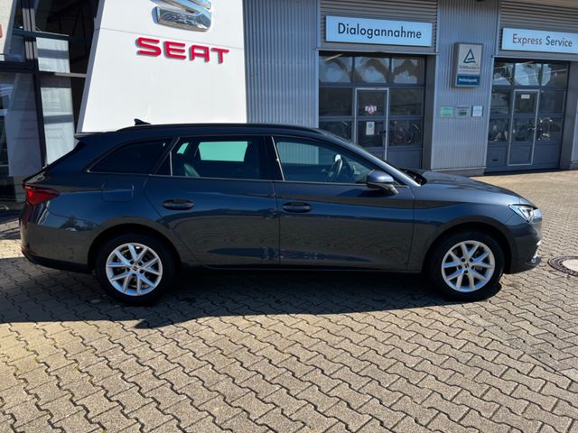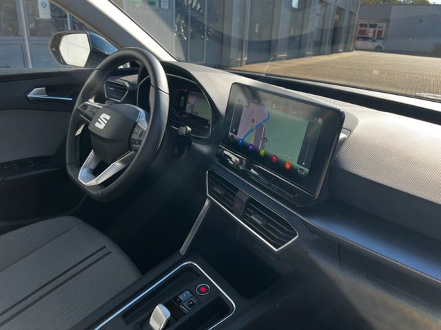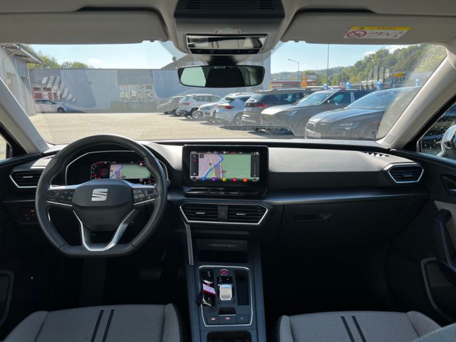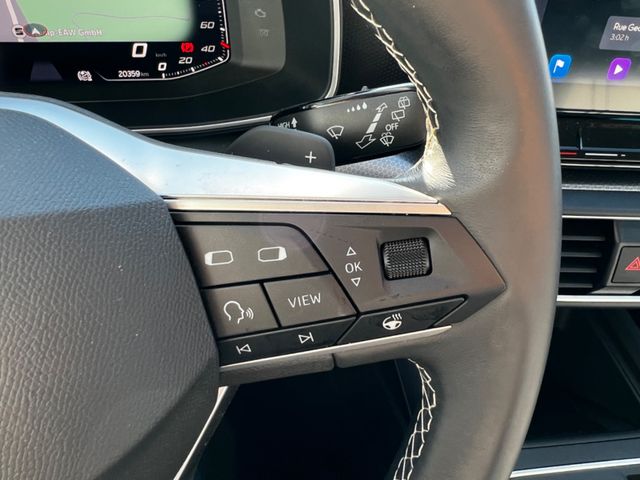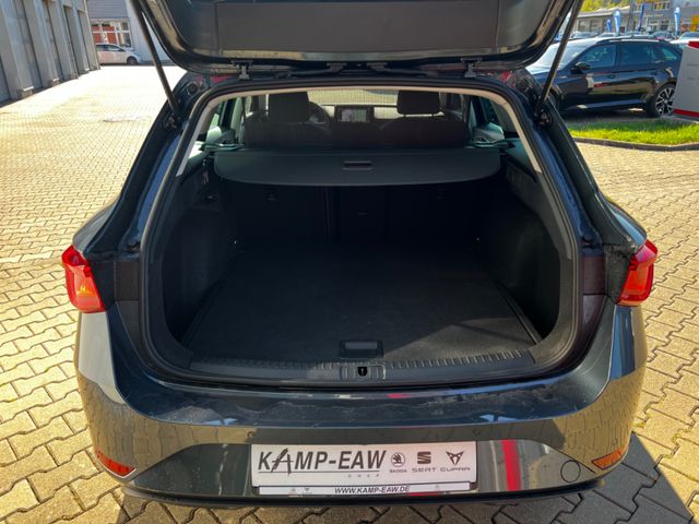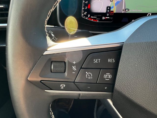 6 Lautsprecher, Ablagetasche an Vordersitzlehnen, Airbag Beifahrerseite abschaltbar, Airbag Fahrer-/Beifahrerseite, Antriebs-Schlupfregelung (ASR), Außenspiegel elektr. verstell- und heizbar, beide, Außenspiegel Wagenfarbe, Blinkleuchten LED in Außenspiegel integriert, Bluetooth-Schnittstelle mit Freisprecheinrichtung integriert, Bordcomputer, Dachreling, Durchladeeinrichtung (Mittelarmlehne hinten), Elektron. Querdifferentialsperre (XDS), Fahrassistenz-System: Müdigkeitserkennung, Fahrassistenz-System: Spurhalteassistent, Fahrassistenz-System: Umfeldbeobachtungssystem (Front assist) mit City-Notbremsfunktion, Fensterheber elektrisch vorn + hinten mit Komfortschaltung, Gepäckraumabdeckung / Rollo, Geschwindigkeits-Regelanlage (Tempomat) inkl. Geschw.-Begrenzer, Handschuhfach beleuchtet, Heckleuchten Voll-LED mit dynamischem Lichtband (Infinite Light), Isofix-Aufnahmen für Kindersitz, Karosserie: 5-türig, Klimaautomatik, Kofferraumbeleuchtung, Kopf-Airbag-System, Laderaumboden variabel und herausnehmbar, Lendenwirbelstütze Sitz vorn links, verstellbar, Lenkrad (Sport/Leder) mit Multifunktion, LM-Felgen, Mild-Hybrid 110 kW (Motor 1,5 Ltr. - 110 kW eTSI ACT), Mobile Online Dienste Seat Connect, Nebelscheinwerfer LED mit Abbiegelicht, Notrufsystem, Otto-Partikelfilter (OPF), Parkbremse elektrisch mit Auto-Hold-Funktion, Radioempfang digital (DAB+), Reifen-Reparaturset, Reifenkontroll-Anzeige, Rücksitzlehne geteilt/klappbar (1/3-2/3), Rücksitzlehnen umklappbar mit Fernentriegelung im Kofferraum, Schadstoffarm nach Abgasnorm Euro 6d, Schalt-/Wählhebelgriff Leder, Seitenairbag, Seitenairbag vorn mitte (Central Airbag), Sitz vorn links höhenverstellbar, Sitz vorn rechts höhenverstellbar, Sitzbezug / Polsterung: Stoff, Sonnenblende links mit Spiegel (beleuchtet), Sonnenblende rechts mit Spiegel (beleuchtet), Start/Stop-Anlage, Steckdose (12V-Anschluß) im Koffer-/Laderaum, Steckdose (12V-Anschluß) vorn, USB-Schnittstelle vorn (2-fach, Typ C), Verzurrösen Koffer-/Laderaum, Warnanlage für Sicherheitsgurt-System, Wärmeschutzverglasung- Metallic