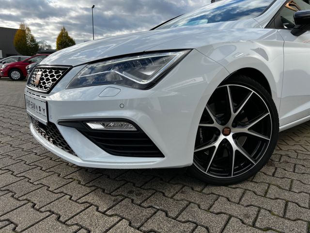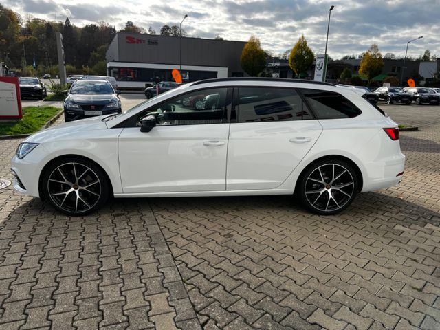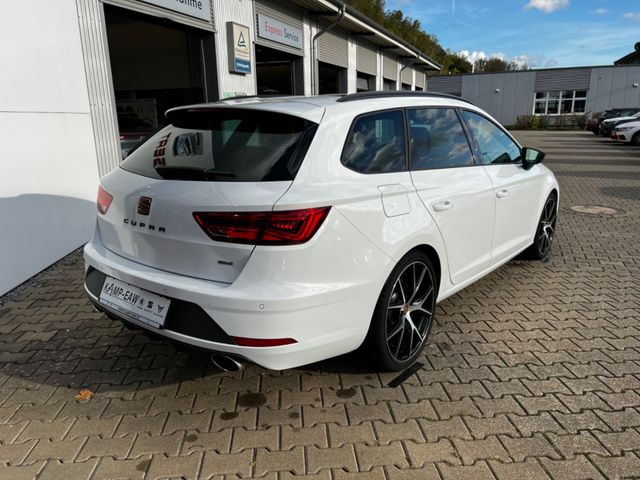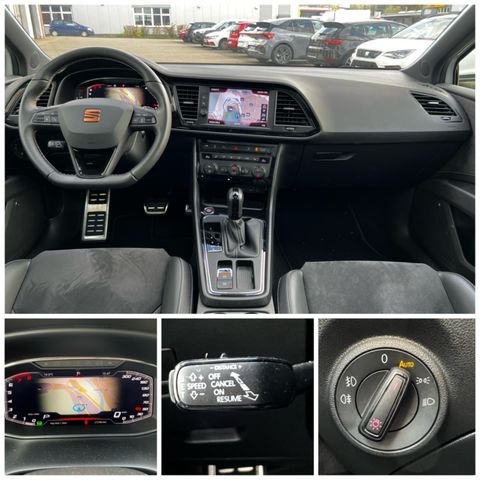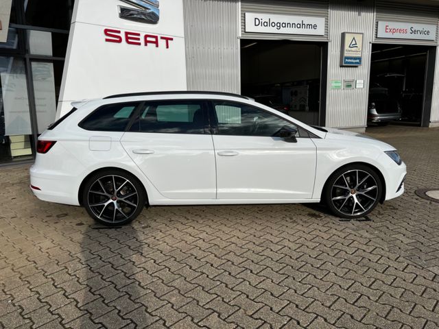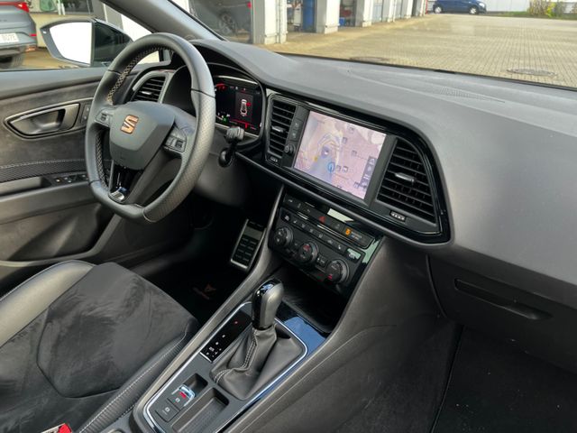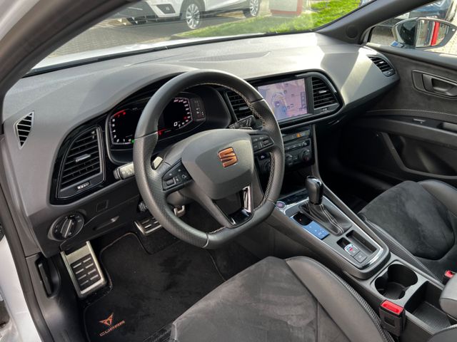 3. Bremsleuchte, Ablage-Paket, Ablagetasche an Vordersitzlehnen, Airbag Beifahrerseite abschaltbar, Airbag Fahrer-/Beifahrerseite, Ambiente-Beleuchtung LED, Antriebs-Schlupfregelung (ASR), Antriebsart: Allradantrieb, Außenspiegel elektr. verstell-, heiz- und anklappbar, beide, Außenspiegel schwarz, Außentemperaturanzeige, Bordcomputer, Bremsassistent, Bremssättel Rot lackiert mit Schriftzug, Dachhimmel schwarz, Dynamic-Paket, Elektron. Differentialsperre (EDS), Fahrassistenz-System: Berganfahr-Assistent (Hill-Holder), Fahrassistenz-System: Fahrprofilauswahl (SEAT Drive Profile), Fahrassistenz-System: Umfeldbeobachtungssystem (Front assist) mit City-Notbremsfunktion, Fensterheber elektrisch hinten, Gepäckraumabdeckung / Rollo, Handschuhfach beleuchtet, Heckspoiler, Innenraumlicht-Paket LED, Isofix-Aufnahmen für Kindersitz, Karosserie: 5-türig, Klimaanlage Climatronic 2-Zonen, Knieairbag Fahrerseite, Kofferraumbeleuchtung, Kombiinstrument digital (virtual cockpit), Kopf-Airbag-System, Kopfstützen hinten (3-fach), Kopfstützen vorn verstellbar, Laderaumboden variabel und herausnehmbar, Lendenwirbelstütze Sitz vorn links, verstellbar, Lendenwirbelstütze Sitz vorn rechts, verstellbar, Licht- und Sicht-Paket, Mittelarmlehne hinten, Modellpflege, Motor 2,0 Ltr. - 221 kW 16V TSI, Otto-Partikelfilter (OPF), Parkbremse elektrisch, Reifenkontroll-Anzeige, Rücksitzlehne geteilt/klappbar (1/3-2/3), Rücksitzlehnen umklappbar mit Fernentriegelung im Kofferraum, Schadstoffarm nach Abgasnorm Euro 6d-TEMP, Schalt-/Wählhebelgriff Leder, Scheinwerfer LED, Seitenairbag, Seitenscheiben hinten und Heckscheibe abgedunkelt, Sitz vorn links höhenverstellbar, Sitz vorn rechts höhenverstellbar, Sitzbezug / Polsterung: Leder, Sitzbezug / Polsterung: Leder / Alcantara, Sonnenblende links mit Spiegel (beleuchtet), Sonnenblende rechts mit Spiegel (beleuchtet), Sport-Fahrwerk FR / Cupra, Start/Stop-Anlage, Steckdose (12V-Anschluß) im Koffer-/Laderaum, Steckdose (12V-Anschluß) vorn, Wärmeschutzverglasung- Metallic