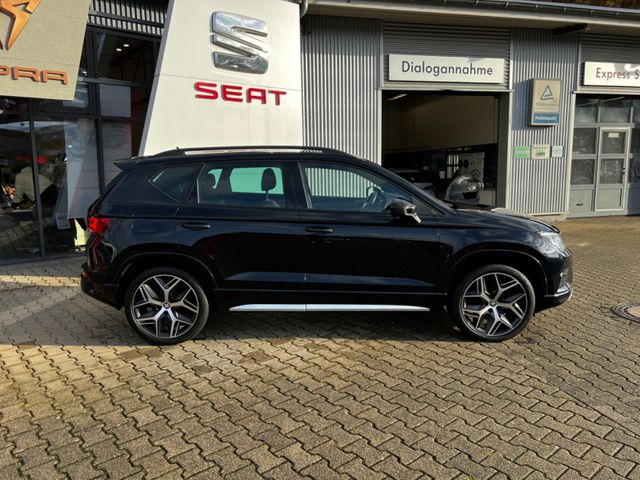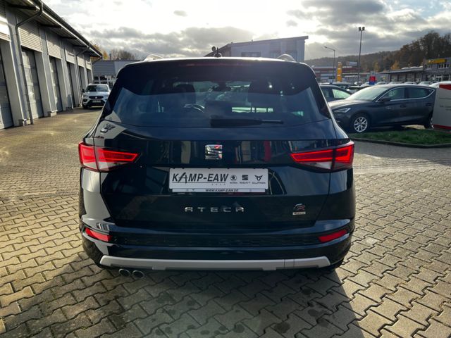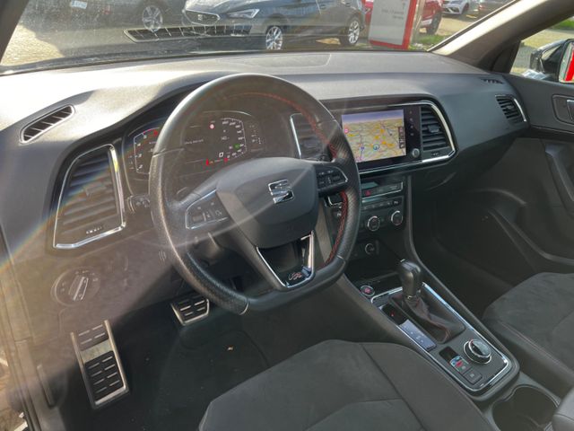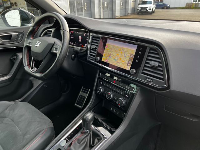 3. Bremsleuchte, Airbag Beifahrerseite abschaltbar, Airbag Fahrer-/Beifahrerseite, Antriebs-Schlupfregelung (ASR), Antriebsart: Allradantrieb, AUX-IN-Anschluss und 2 x USB-Anschluss, Außenspiegel elektr. verstell-, heiz- und anklappbar mit Spiegelabsenkung und Welcome Light, Außenspiegel lackiert, Außenspiegel und Türgriffe außen in Wagenfarbe, Blinkleuchten in Außenspiegel integriert, Bordcomputer, Bremsassistent, Dachhimmel schwarz, Dachreling, Doppeltonhorn, Einparkhilfe hinten, Einstiegsleisten beleuchtet, Fahrassistenz-System: Berganfahr-Assistent (Hill-Holder), Fahrassistenz-System: Fahrprofilauswahl (SEAT Drive Profile), Fahrassistenz-System: Müdigkeitserkennung, Fahrassistenz-System: Umfeldbeobachtungssystem (Front assist) mit City-Notbremsfunktion, Fensterheber elektrisch vorn + hinten, Fußraumbeleuchtung vorn, Gepäckraumabdeckung / Rollo, Handschuhfach beleuchtet, Heckleuchten LED, Innenausstattung: Chrom-Applikationen, Innenraumlicht-Paket LED, Isofix-Aufnahmen für Kindersitz, Karosserie: 5-türig, Klimaanlage Climatronic 2-Zonen, Knieairbag Fahrerseite, Komfortsitze, Kopf-Airbag-System, Kopfstützen hinten (3-fach), Kopfstützen vorn, Lendenwirbelstütze Sitz vorn links, verstellbar, Lendenwirbelstütze Sitz vorn rechts, verstellbar, Lendenwirbelstütze verstellbar, Lenkrad (Sport/Leder) mit Multifunktion, Mittelarmlehne hinten, Mittelkonsole vorn mit Mittelarmlehne, Becherhalter, Ablagebox und Luftausströmer hinten, Motor 2,0 Ltr. - 140 kW TDI, Parkbremse elektrisch, Radstand 2630 mm, Reifenkontroll-Anzeige, Rücksitzlehne klappbar, Rücksitzlehnen umklappbar mit Fernentriegelung im Kofferraum, Schadstoffarm nach Abgasnorm Euro 6d-TEMP, Schalt-/Wählhebelgriff Leder, Scheinwerfer LED, Seitenairbag, Seitenscheiben hinten und Heckscheibe abgedunkelt, Sitz vorn links höhenverstellbar, Sitz vorn rechts höhenverstellbar, Sitz-Paket Dinamica, Sitzbezug / Polsterung: Leder / Alcantara, Start/Stop-Anlage, Stau-/Ablagefach unter Sitz vorn links, Steckdose (12V-Anschluß) vorn, Stoßfänger FR-Design, Verglasung getönt, Verzurrösen Koffer-/Laderaum, Wärmeschutzverglasung- Metallic