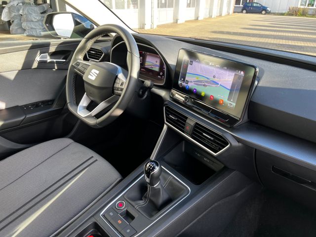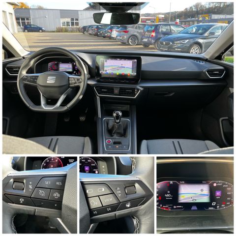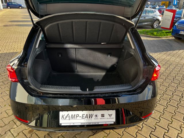 6 Lautsprecher, Ablagetasche an Vordersitzlehnen, Airbag Beifahrerseite abschaltbar, Airbag Fahrer-/Beifahrerseite, Antriebs-Schlupfregelung (ASR), Außenspiegel elektr. verstell- und heizbar, beide, Außenspiegel Wagenfarbe, Blinkleuchten LED in Außenspiegel integriert, Bluetooth-Schnittstelle mit Freisprecheinrichtung integriert, Bordcomputer, Elektron. Querdifferentialsperre (XDS), Fahrassistenz-System: Müdigkeitserkennung, Fahrassistenz-System: Spurhalteassistent, Fahrassistenz-System: Umfeldbeobachtungssystem (Front assist) mit City-Notbremsfunktion, Fensterheber elektrisch vorn + hinten mit Komfortschaltung, Gepäckraumabdeckung / Rollo, Geschwindigkeits-Regelanlage (Tempomat) inkl. Geschw.-Begrenzer, Handschuhfach beleuchtet, Isofix-Aufnahmen für Kindersitz, Karosserie: 5-türig, Klimaautomatik, Kofferraumbeleuchtung, Kopf-Airbag-System, Lendenwirbelstütze Sitz vorn links, verstellbar, Lenkrad (Sport/Leder) mit Multifunktion, LM-Felgen, Mobile Online Dienste Seat Connect, Motor 1,5 Ltr. - 96 kW 16V TSI ACT, Nebelscheinwerfer LED mit Abbiegelicht, Notrufsystem, Otto-Partikelfilter (OPF), Parkbremse elektrisch mit Auto-Hold-Funktion, Radioempfang digital (DAB+), Reifen-Reparaturset, Reifenkontroll-Anzeige, Rücksitzlehne geteilt/klappbar (1/3-2/3), Schadstoffarm nach Abgasnorm Euro 6d, Schalt-/Wählhebelgriff Leder, Seitenairbag, Seitenairbag vorn mitte (Central Airbag), Sitz vorn links höhenverstellbar, Sitz vorn rechts höhenverstellbar, Sitzbezug / Polsterung: Stoff, Sonnenblende links mit Spiegel (beleuchtet), Sonnenblende rechts mit Spiegel (beleuchtet), Start/Stop-Anlage, Steckdose (12V-Anschluß) vorn, USB-Schnittstelle vorn (2-fach, Typ C), Verzurrösen Koffer-/Laderaum, Warnanlage für Sicherheitsgurt-System, Wärmeschutzverglasung- Metallic