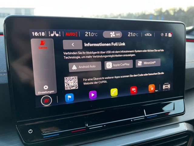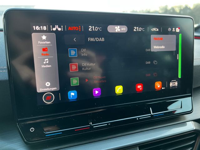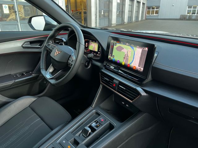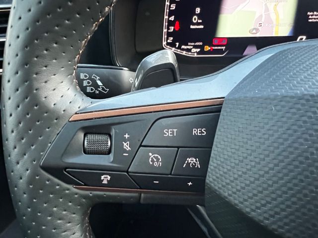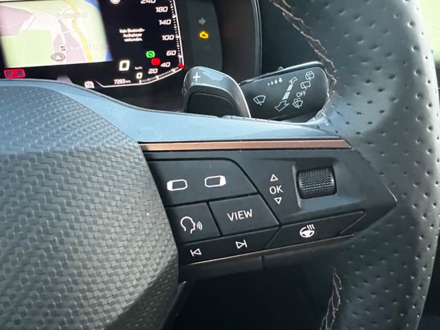 7 Lautsprecher, Airbag Beifahrerseite abschaltbar, Airbag Fahrer-/Beifahrerseite, Antriebs-Schlupfregelung (ASR), Blinkleuchten LED in Außenspiegel integriert, Bluetooth-Schnittstelle mit Freisprecheinrichtung integriert, Dachreling schwarz, hochglänzend, Doppeltonhorn, Einstiegsleisten (Aluminium) vorn, beleuchtet, Elektron. Differentialsperre (XDS), Fahrassistenz-System: Fahrprofilauswahl (CUPRA Drive Profile), Fensterheber elektrisch vorn + hinten mit Komfortschaltung, Fensterzierleisten schwarz hochglänzend, Gepäckraumabdeckung / Rollo, Heckleuchten Voll-LED mit dynamischem Lichtband (Infinite Light), Isofix-Aufnahmen für Kindersitz an Rücksitz, Karosserie: 5-türig, Klimaanlage Climatronic 3-Zonen, Kombiinstrument digital (virtual cockpit), Kopf-Airbag-System, Laderaumboden variabel und herausnehmbar, Licht- und Sicht-Paket, LM-Felgen, Mittelarmlehne hinten, Mittelkonsole vorn mit Mittelarmlehne, Becherhalter, Ablagebox und Luftausströmer hinten, Motor 1,5 Ltr. - 110 kW 16V TSI ACT, Notrufsystem, Otto-Partikelfilter (OPF), Parkbremse elektrisch, Radioempfang digital (DAB+), Radstand 2679 mm, Reifen-Reparaturset, Rücksitzlehne geteilt/klappbar (1/3-2/3), Rücksitzlehnen umklappbar mit Fernentriegelung im Kofferraum, Schadstoffarm nach Abgasnorm Euro 6d, Seitenairbag, Seitenairbag vorn mitte (Central Airbag), Seitenscheiben hinten und Heckscheibe abgedunkelt, Sitz vorn links höhenverstellbar, Sitz vorn rechts höhenverstellbar, Sitzbezug / Polsterung: Stoff, Sonnenblende links mit Spiegel (beleuchtet), Sonnenblende rechts mit Spiegel (beleuchtet), Sportsitze vorn, Start/Stop-Anlage, Steckdose (12V-Anschluß) vorn, Steckdose 230V im Gepäckraum, USB-Ladeanschlüsse (2-fach, Typ C) für 2.Sitzreihe, USB-Schnittstelle vorn (2-fach, Typ C), Verzurrösen Koffer-/Laderaum, Warnanlage für Sicherheitsgurt-System, Wärmeschutzverglasung- Metallic