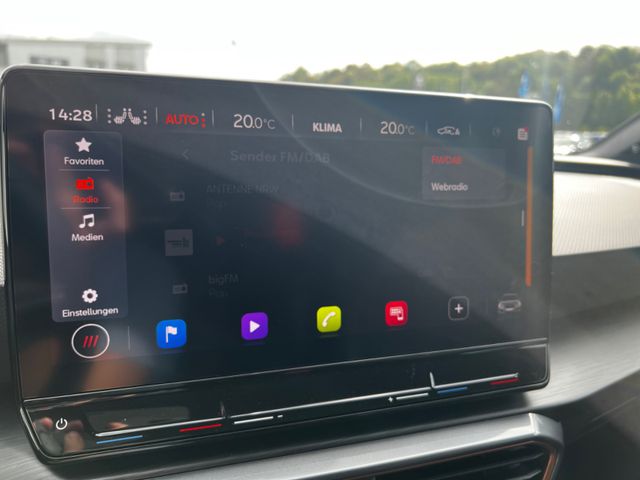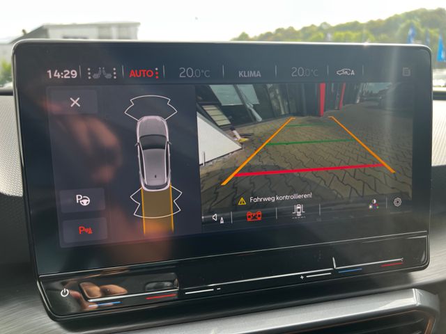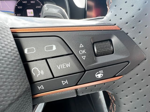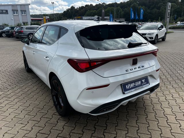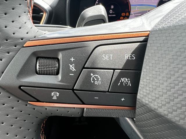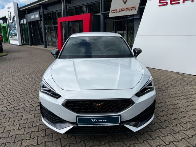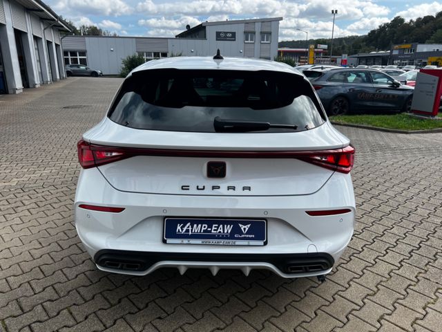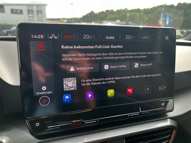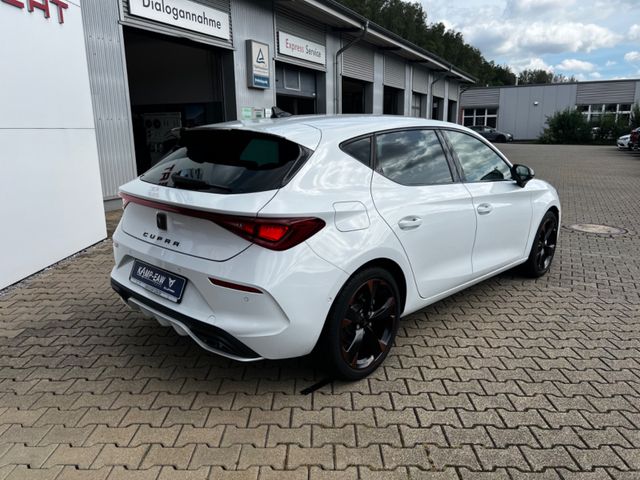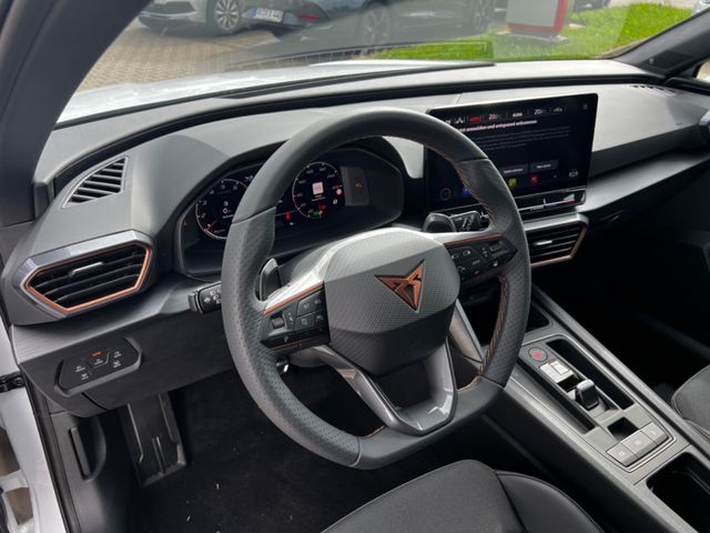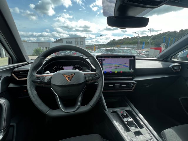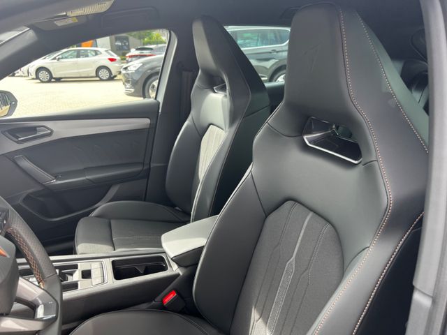 Airbag Beifahrerseite abschaltbar, Airbag Fahrer-/Beifahrerseite, Antriebs-Schlupfregelung (ASR), Außenspiegel elektr. verstell-, heiz- und anklappbar mit Spiegelabsenkung und Welcome Light, Blinkleuchten LED in Außenspiegel integriert, Differentialsperre (Vorderachse), Doppeltonhorn, Einstiegsleisten (Aluminium) vorn, beleuchtet, Fahrassistenz-System: Adaptive Fahrwerksregelung (DCC), Fahrassistenz-System: Fahrprofilauswahl (CUPRA Drive Profile), Fensterheber elektrisch vorn + hinten mit Komfortschaltung, Fensterzierleisten schwarz hochglänzend, Gepäckraumabdeckung / Rollo, Heckleuchten LED mit dynamischem Blinklicht, Heckleuchten Voll-LED mit dynamischem Lichtband (Infinite Light), Isofix-Aufnahmen für Kindersitz an Rücksitz, Karosserie: 5-türig, Klimaanlage Climatronic 3-Zonen, Kombiinstrument digital (virtual cockpit), Kopf-Airbag-System, Lendenwirbelstütze Sitz vorn rechts, verstellbar, Licht- und Sicht-Paket, LM-Felgen, Media-System Plus, Mild-Hybrid 110 kW (Motor 1,5 Ltr. - 110 kW eTSI), Mittelkonsole vorn mit Mittelarmlehne, Becherhalter, Ablagebox und Luftausströmer hinten, Mobile Online Dienste Cupra Connect, Notrufsystem, Otto-Partikelfilter (OPF), Parkbremse elektrisch, Radioempfang digital (DAB+), Rücksitzlehne geteilt/klappbar (1/3-2/3), Schadstoffarm nach Abgasnorm Euro 6d, Seitenairbag, Seitenairbag vorn mitte (Central Airbag), Seitenscheiben hinten und Heckscheibe abgedunkelt, Sitz vorn links höhenverstellbar, Sitz vorn rechts höhenverstellbar, Sitzbezug / Polsterung: Stoff, Sonnenblende links mit Spiegel (beleuchtet), Sonnenblende rechts mit Spiegel (beleuchtet), Sport-Schalensitze vorn mit integrierten Kopfstützen, Sprachsteuerungs-System, Start/Stop-Anlage, USB-Ladeanschlüsse (2-fach, Typ C) für 2.Sitzreihe, USB-Schnittstelle vorn (2-fach, Typ C), Verzurrösen Koffer-/Laderaum, Warnanlage für Sicherheitsgurt-System, Wärmeschutzverglasung- Metallic