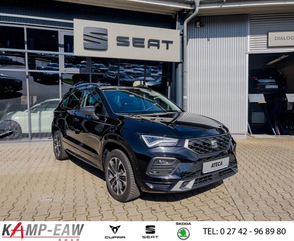 3. Bremsleuchte, 8 Lautsprecher, Ablagetasche an Vordersitzlehnen, Airbag Beifahrerseite abschaltbar, Airbag Fahrer-/Beifahrerseite, Antriebs-Schlupfregelung (ASR), Außenspiegel elektr. verstell-, heiz- und anklappbar mit Spiegelabsenkung, Außenspiegel grau, Blinkleuchten LED in Außenspiegel integriert, Bluetooth-Schnittstelle mit Freisprecheinrichtung integriert, Bordcomputer, Brillenfach, Dachreling, Doppeltonhorn, Einstiegsleisten beleuchtet, Elektron. Querdifferentialsperre (XDS), Fahrassistenz-System: Berganfahr-Assistent (Hill-Holder), Fahrassistenz-System: Fahrprofilauswahl (SEAT Drive Profile), Fahrassistenz-System: Müdigkeitserkennung, Fahrassistenz-System: Umfeldbeobachtungssystem (Front assist) mit City-Notbremsfunktion, Fensterheber elektrisch vorn + hinten mit Komfortschaltung, Gepäckraumabdeckung / Rollo, Handschuhfach beleuchtet, Heckleuchten LED mit dynamischem Blinklicht, Heckspoiler Wagenfarbe, Innenraumlicht-Paket LED, Isofix-Aufnahmen für Kindersitz, Karosserie: 5-türig, Klimaanlage Climatronic 2-Zonen, Knieairbag Fahrerseite, Kofferraumbeleuchtung, Kopf-Airbag-System, Lendenwirbelstütze Sitz vorn links, verstellbar, Lendenwirbelstütze Sitz vorn rechts, verstellbar, LM-Felgen, Mittelarmlehne hinten, Mittelkonsole vorn mit Mittelarmlehne, Becherhalter, Ablagebox und Luftausströmer hinten, Modellpflege, Motor 1,5 Ltr. - 110 kW 16V TSI ACT, Nebelscheinwerfer LED mit Abbiegelicht, Notrufsystem, Otto-Partikelfilter (OPF), Parkbremse elektrisch mit Auto-Hold-Funktion, Pedale Aluminium-Design, Radstand 2638 mm, Reifen-Reparaturset, Reifenkontroll-Anzeige, Rückfahrkamera, Rücksitzlehne geteilt/klappbar (1/3-2/3), Schadstoffarm nach Abgasnorm Euro 6d, Schalt-/Wählhebelgriff Leder, Scheinwerfer Voll-LED, SEAT Media-System Plus, Seitenairbag, Seitenscheiben hinten und Heckscheibe abgedunkelt, Sitz vorn links höhenverstellbar, Sitz vorn rechts höhenverstellbar, Sitzbezug / Polsterung: Stoff, Sonnenblende links mit Spiegel (beleuchtet), Sonnenblende rechts mit Spiegel (beleuchtet), Start/Stop-Anlage, Stau-/Ablagefach unter Sitz vorn links, Steckdose (12V-Anschluß) vorn, Stoßfänger FR-Design, USB-Ladeanschlüsse (2-fach, Typ C) für 2.Sitzreihe, Verzurrösen Koffer-/Laderaum, Wärmeschutzverglasung- Metallic