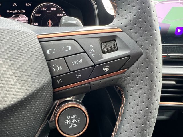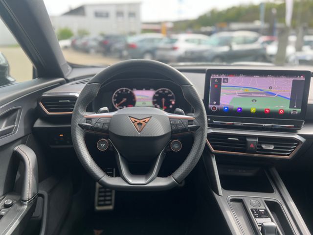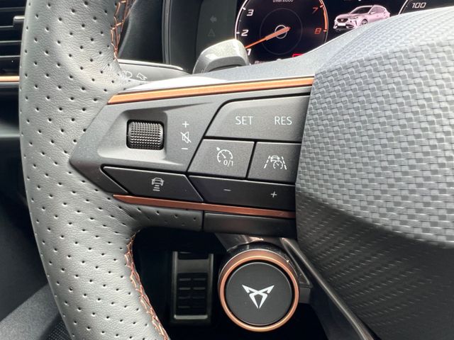 Airbag Beifahrerseite abschaltbar, Airbag Fahrer-/Beifahrerseite, Ambiente-Beleuchtung Smart Ambient Light, Antriebs-Schlupfregelung (ASR), Audio-Navigationssystem mit Touchscreen Farbbildschirm, Blinkleuchten LED in Außenspiegel integriert, Bluetooth-Schnittstelle mit Freisprecheinrichtung integriert, Dachhimmel schwarz, Dachreling schwarz, hochglänzend, Doppeltonhorn, Einstiegsleisten (Aluminium) vorn, beleuchtet, Elektron. Differentialsperre (XDS), Fahrassistenz-Paket L, Fahrassistenz-Paket: Stau- und Notfallassistent, Fahrassistenz-Paket: Travel Assist, Fahrassistenz-System: Adaptive Fahrwerksregelung (DCC), Fahrassistenz-System: Fahrprofilauswahl (CUPRA Drive Profile), Fahrassistenz-System: Parklenkassistent mit Einparkhilfe vorn und hinten, Fensterheber elektrisch vorn + hinten mit Komfortschaltung, Fensterzierleisten schwarz hochglänzend, Gepäckraumabdeckung / Rollo, Heckleuchten Voll-LED mit dynamischem Lichtband (Infinite Light), Isofix-Aufnahmen für Kindersitz an Rücksitz, Karosserie: 5-türig, Klimaanlage Climatronic 3-Zonen, Kombiinstrument digital (virtual cockpit), Kopf-Airbag-System, Laderaumboden variabel und herausnehmbar, Licht- und Sicht-Paket, LM-Felgen, Mittelarmlehne hinten, Mittelkonsole vorn mit Mittelarmlehne, Becherhalter, Ablagebox und Luftausströmer hinten, Motor 2,0 Ltr. - 228 kW 16V TSI, Notrufsystem, Otto-Partikelfilter (OPF), Parkbremse elektrisch, Radioempfang digital (DAB+), Radstand 2680 mm, Reserverad als Notrad, Rücksitzlehne geteilt/klappbar (1/3-2/3), Rücksitzlehnen umklappbar mit Fernentriegelung im Kofferraum, Schadstoffarm nach Abgasnorm Euro 6d, Seitenairbag, Seitenairbag vorn mitte (Central Airbag), Seitenscheiben hinten und Heckscheibe abgedunkelt, Sitz vorn links höhenverstellbar, Sitz vorn rechts höhenverstellbar, Sitzbezug / Polsterung: Stoff, Sonnenblende links mit Spiegel (beleuchtet), Sonnenblende rechts mit Spiegel (beleuchtet), Sport-Schalensitze vorn mit integrierten Kopfstützen, Start/Stop-Anlage, Steckdose (12V-Anschluß) vorn, Steckdose 230V im Gepäckraum, USB-Ladeanschlüsse (2-fach, Typ C) für 2.Sitzreihe, USB-Schnittstelle vorn (2-fach, Typ C), Verzurrösen Koffer-/Laderaum, Warnanlage für Sicherheitsgurt-System, Wärmeschutzverglasung- Metallic