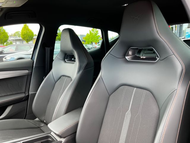 7 Lautsprecher, Airbag Beifahrerseite abschaltbar, Airbag Fahrer-/Beifahrerseite, Ambiente-Beleuchtung Smart Ambient Light, Antriebs-Schlupfregelung (ASR), Audio-Navigationssystem mit Touchscreen Farbbildschirm, Blinkleuchten LED in Außenspiegel integriert, Bluetooth-Schnittstelle mit Freisprecheinrichtung integriert, Dachhimmel schwarz, Dachreling schwarz, hochglänzend, Doppeltonhorn, Einstiegsleisten (Aluminium) vorn, beleuchtet, Elektron. Differentialsperre (XDS), Fahrassistenz-Paket XL, Fahrassistenz-System: Adaptive Fahrwerksregelung (DCC), Fahrassistenz-System: Fahrprofilauswahl (CUPRA Drive Profile), Fahrassistenz-System: Parklenkassistent mit Einparkhilfe vorn und hinten, Fensterheber elektrisch vorn + hinten mit Komfortschaltung, Fensterzierleisten schwarz hochglänzend, Gepäckraumabdeckung / Rollo, Heckleuchten Voll-LED mit dynamischem Lichtband (Infinite Light), Isofix-Aufnahmen für Kindersitz an Rücksitz, Karosserie: 5-türig, Klimaanlage Climatronic 3-Zonen, Kombiinstrument digital (virtual cockpit), Kopf-Airbag-System, Laderaumboden variabel und herausnehmbar, Licht- und Sicht-Paket, Mittelarmlehne hinten, Mittelkonsole vorn mit Mittelarmlehne, Becherhalter, Ablagebox und Luftausströmer hinten, Motor 2,0 Ltr. - 228 kW 16V TSI, Notrufsystem, Otto-Partikelfilter (OPF), Parkbremse elektrisch, Radioempfang digital (DAB+), Radstand 2680 mm, Rücksitzlehne geteilt/klappbar (1/3-2/3), Rücksitzlehnen umklappbar mit Fernentriegelung im Kofferraum, Schadstoffarm nach Abgasnorm Euro 6d, Seitenairbag, Seitenairbag vorn mitte (Central Airbag), Seitenscheiben hinten und Heckscheibe abgedunkelt, Sitz vorn links höhenverstellbar, Sitz vorn rechts höhenverstellbar, Sitzbezug / Polsterung: Stoff, Sonnenblende links mit Spiegel (beleuchtet), Sonnenblende rechts mit Spiegel (beleuchtet), Sport-Schalensitze vorn mit integrierten Kopfstützen, Start/Stop-Anlage, Steckdose (12V-Anschluß) vorn, Steckdose 230V im Gepäckraum, USB-Ladeanschlüsse (2-fach, Typ C) für 2.Sitzreihe, USB-Schnittstelle vorn (2-fach, Typ C), Verzurrösen Koffer-/Laderaum, Warnanlage für Sicherheitsgurt-System, Wärmeschutzverglasung- Metallic