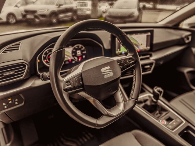 6 Lautsprecher, Ablagetasche an Vordersitzlehnen, Airbag Beifahrerseite abschaltbar, Airbag Fahrer-/Beifahrerseite, Antriebs-Schlupfregelung (ASR), Außenspiegel elektr. verstell- und heizbar, beide, Außenspiegel Wagenfarbe, Blinkleuchten LED in Außenspiegel integriert, Bluetooth-Schnittstelle mit Freisprecheinrichtung integriert, Bordcomputer, Elektron. Querdifferentialsperre (XDS), Fahrassistenz-System: Müdigkeitserkennung, Fahrassistenz-System: Spurhalteassistent, Fahrassistenz-System: Umfeldbeobachtungssystem (Front assist) mit City-Notbremsfunktion, Fensterheber elektrisch vorn + hinten mit Komfortschaltung, Gepäckraumabdeckung / Rollo, Geschwindigkeits-Regelanlage (Tempomat) inkl. Geschw.-Begrenzer, Handschuhfach beleuchtet, Heckleuchten LED, Isofix-Aufnahmen für Kindersitz, Karosserie: 5-türig, Kofferraumbeleuchtung, Kombiinstrument digital (virtual cockpit), Kopf-Airbag-System, Lendenwirbelstütze Sitz vorn links, verstellbar, Lenkrad (Sport/Leder) mit Multifunktion, LM-Felgen, Mobile Online Dienste Seat Connect, Motor 2,0 Ltr. - 85 kW TDI, Nebelscheinwerfer LED mit Abbiegelicht, Notrufsystem, Parkbremse elektrisch mit Auto-Hold-Funktion, Radioempfang digital (DAB+), Reifen-Reparaturset, Reifenkontroll-Anzeige, Rücksitzlehne geteilt/klappbar (1/3-2/3), Schadstoffarm nach Abgasnorm Euro 6d, Schalt-/Wählhebelgriff Leder, Seitenairbag, Seitenairbag vorn mitte (Central Airbag), Sitz vorn links höhenverstellbar, Sitz vorn rechts höhenverstellbar, Sitzbezug / Polsterung: Stoff, Sonnenblende links mit Spiegel (beleuchtet), Sonnenblende rechts mit Spiegel (beleuchtet), Start/Stop-Anlage, Steckdose (12V-Anschluß) vorn, USB-Schnittstelle vorn (2-fach, Typ C), Verzurrösen Koffer-/Laderaum, Warnanlage für Sicherheitsgurt-System, Wärmeschutzverglasung- Leichtmetallfelgen