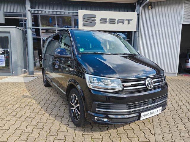 Abdeckung Schiebetürleiste, Airbag Beifahrer abschaltbar, Airbag Fahrer-/Beifahrerseite, Antriebsart: Allradantrieb, Armaturentafel Komfort, Ausstattungs-Paket Licht + Sicht, Außenspiegel asphärisch, links, Außenspiegel elektr. verstell-, heiz- und anklappbar, Außenspiegel konvex, rechts, Außenspiegel und Türgriffe außen in Wagenfarbe, Bodenbelag im Fahrerhaus: Teppich, Bodenbelag: Teppich verstärkt, Chromleisten Stoßfänger vorn, seitlich und Heckklappe unten, Doppelton - Fanfare, Dämmglas-Paket, Fahrassistenz-System: Autom. Distanzregelung (ACC) und Umfeldbeobachtungssystem (Front Assist), Fahrassistenz-System: Bremsassistent (HBA), Fahrassistenz-System: Multikollisionsbremse (Multi Collision Brake), Fahrassistenz-System: Müdigkeitserkennungs-Sensor, Fahrassistenz-System: Spurwechselassistent (Side Assist / Blind Spot Sensor), Fahrwerk 17", Fenster im Lade-/FG-Raum: - feststehend, vorn und hinten links, Fenster im Lade-/FG-Raum: - feststehend, vorn und hinten rechts, Frontscheibe Dämmglas, Fußmatten Fahrerhaus: Velours, Haltegriffe A-Säulen, Handschuhfach abschließbar, Heckklappe mit Verglasung, Heckscheibe heizbar, mit Wischanlage, Innenausstattung: Dekoreinlagen Dark Silver brushed (Dekorband Black Glossy), Innenleuchten im Fahrerhaus: Leseleuchten vorn (2), Innenleuchten im Lade-/FG-Raum: Trittstufenleuchten, Karosserie/Aufbau: Bus, Kindersicherung an den Schiebetüren, Klimaautomatik Climatronic (Fahrerhaus + Lade-/Fahrgastraum), Kraftstofftank: 80 Ltr., Kühlergrill schwarz lackiert, mit Chromleisten, Ladekanten-/ Trittstufenabdeckungen in Edelstahl, Lenksäule (Lenkrad) verstellbar, Motor 2,0 Ltr. - 150 kW TDI, Multifunktionsanzeige Premium (Farbdisplay), Multimedia-Schnittstelle USB (iPhone / iPod) mit AUX-IN, Radstand 3000 mm, Reifen-Reparaturkit, Reifenkontroll-Anzeige, Schadstoffarm nach Abgasnorm Euro 6, Scheinwerfer und Heckleuchten LED, Schiebetür Lade-/Fahrgastraum rechts, SCR-System (AdBlue-Technologie), Seitenscheiben Dämmglas, Sitzbezug / Polsterung: Alcantara, Sitze im Fahrerhaus: Beifahrersitz Komfort, Sitze im Fahrerhaus: Fahrer- und Beifahrersitz heizbar, Sitze im Fahrerhaus: Fahrer- und Beifahrersitz höhenverstellbar, Sitze im Fahrerhaus: Fahrersitz Komfort, Sitze im Fahrerhaus: Lendenwirbelstützen Fahrer- und Beifahrersitz, Sitze im Lade-/FG-Raum: 1.Reihe, 2 Drehsitze, Sitze im Lade-/FG-Raum: 2.Reihe, 3er-Sitzbank, Sonnenblenden mit Spiegel (beleuchtet), Sonnenschutzrollo im Fahrgastraum, Start/Stop-Anlage Motor, Steckdose (12V-Anschluß) im Fahrerhaus, Stoßfänger in Wagenfarbe, Türablagekasten vorn, Verkleidung im Lade-/FG-Raum: Komfort, Zentralverriegelung mit Fernbedienung und Innenbetätigung, Zuheizer, Zul. Gesamtgewicht 3,00 t- Metallic